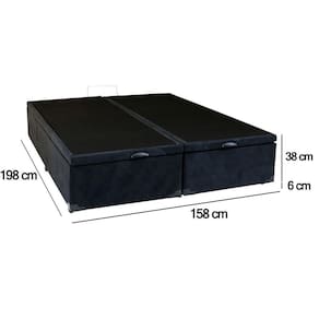 Cama Box Baú Queen Bipartido Suede Serene Preto 158x198x44