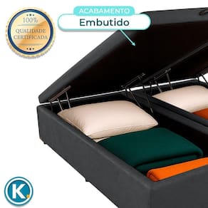 Cama Box Bau Queen Blindado Nature Cinza 158x198 Base baú Queen com 42cm de altura e amplo espaço interno para organização Revestimento em Veludo , fácil de limpar e com visual moderno