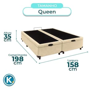 Modelo: Elite Marca: Nature Tamanho: Queen Tecido: Veludo Largura: 158cm Comprimento: 198cm Altura: 35cm Altura dos Pés: 7cm Material dos Pés: Madeira Suporte de Peso: 150Kg Peso: 40Kg Garantia: 3 Meses