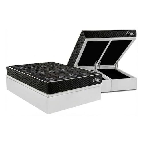 Cama Box Baú Queen + Colchão Anatômico Kappesberg D28 Onix + Base CRC Corano White