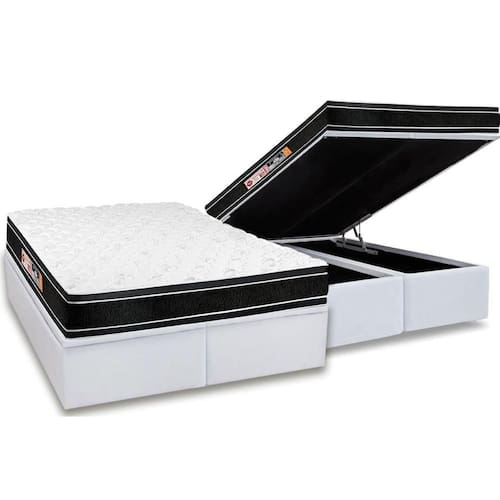 Conjunto Box Baú Queen: Colchão Espuma Castor D33 Black e White Air Euro Pillow + Base CRC Courano White(158x198)