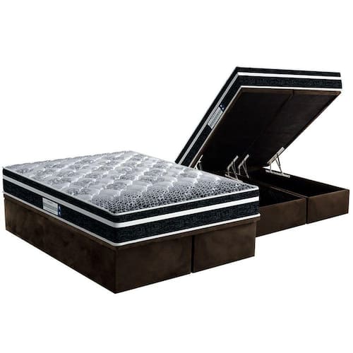 Abaixo segue os produtos do KIT: Cama Box Baú Queen: Colchão Anatômico Probel D33/ ProDormir Advanced Tech1500 Plus + Base CRC Suede Brown(158x198)