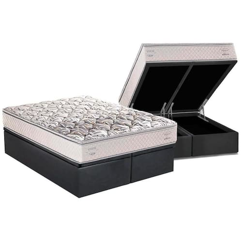 Cama Box Baú Queen: Colchão Anatômico Herval ErgoPlus + Base CRC Suede Gray (158x198)