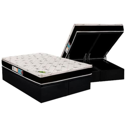 Abaixo segue os produtos do KIT: Cama Box Baú Queen: Colchão Anatômico Luckspuma D33 / AG65 Aspen Super Firme + Base CRC Suede Black(158x198)