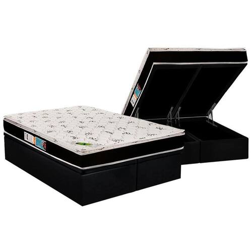 Cama Box Baú Queen: Colchão Anatômico Luckspuma D33 / AG65 Aspen Super Firme + Base CRC Suede Black(158x198)