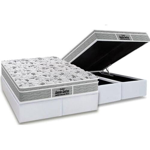 Abaixo segue os produtos do KIT: Cama Box Baú Queen: Colchão Anatômico Probel D45 Guarda Costas PróExtreme Plus + Base CRC Courano White (158x198)