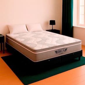 O colchão Ibiza combina Molas Ensacadas, espuma de alta performance e sistema EPS, oferecendo suporte, conforto térmico e design moderno para noites revigorantes. Já a Base Box Baú Bravus une funcionalidade e elegância, com estrutura resistente, revestimento em tecido sintético e amplo espaço para armazenamento, ideal para otimizar o quarto com estilo..