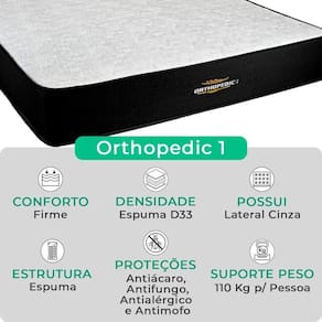 O Conjunto Colchão Orthopedic + Base Box Baú Bravus da V-Store une conforto e funcionalidade. O colchão, com espuma D33 e suporte extra firme, oferece alinhamento ideal e proteção contra ácaros, alergias e fungos. A base box baú, com estrutura resistente e espaço interno, combina organização e estilo, otimizando seu dormitório com praticidade e elegância.