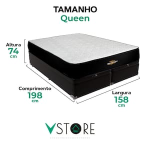 A tecnologia que a sua casa merece está na V-Store! O Conjunto Colchão Orthopedic + Base Box Baú Bravus da V-Store une conforto e funcionalidade. O colchão, com espuma D33 e suporte extra firme, oferece alinhamento ideal e proteção contra ácaros, alergias e fungos. A base box baú, com estrutura resistente e espaço interno, combina organização e estilo, otimizando seu dormitório com praticidade e elegância.Característica Do Colchão: Modelo: OrthopedicMarca: V-StoreTamanho: QueenDimensões: 158x30x198 (Largura x Altura x Comprimento)Conforto: Extra FirmeSistema: EspumaPillow: Não se aplicaPeso Máximo recomendado: 110 kg (Por pessoa)Proteções: Antiácaro, antialérgico, antifungo, antimofoGarantia: 12 Meses (Espuma)Característica Da Base: Marca: V-StoreModelo: BravusTamanho: QueenDimensões: 158x44x198 (Largura x Altura x Comprimento)Estrutura: MadeiraPeso máximo recomendado: 150 kg (Por Pessoa)Altura do Box: 38 cmAltura dos Pés: 6 cmAltura total: 44 cmGarantia: 12 Meses (Estrutura) / 3 meses (Tecido)Selo Ecologicamente CorretoAtenção:- Antes de finalizar sua compra, recomendamos que verifique se as dimensões do produto são adequadas para serem transportadas pelos elevadores, portas, escadas e corredores de sua residência. Ressaltamos que não nos responsabilizamos pelo transporte do produto por meios específicos, como escadas, guinchos ou içamentos.- É possível que hajam leves variações de cor de acordo com o dispositivo que está sendo utilizado como smartphones, computadores, monitores e outros.