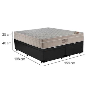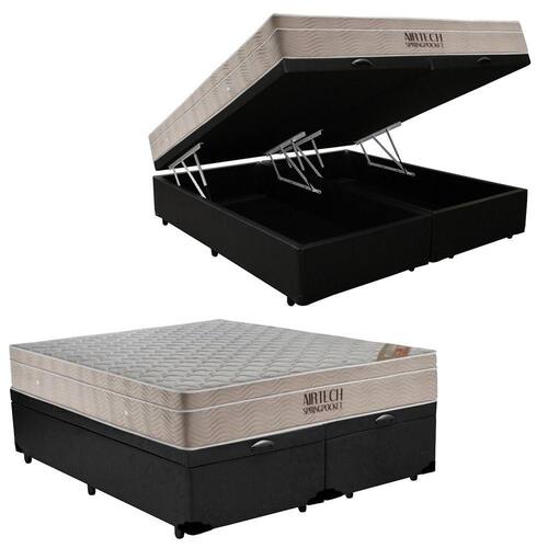 Cama Box Baú Queen Sintético Bipartido + Colchão Ortobom Airtech Molas Ensacadas 65x158x198 Preto