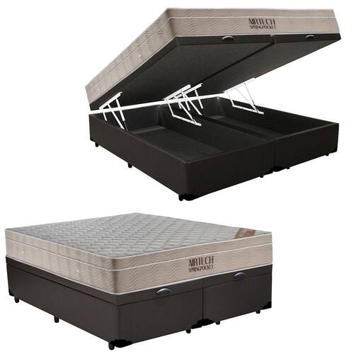 Cama Box Baú Queen Sintético Bipartido + Colchão Ortobom Airtech Molas Ensacadas 65x158x198 - Marrom