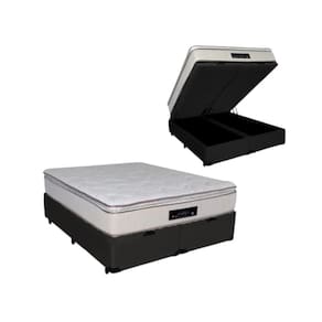 Cama Box Baú Queen Sintético + Colchão Cloud Pillow Top Molas Ensacadas Luckspuma 158x198x74
