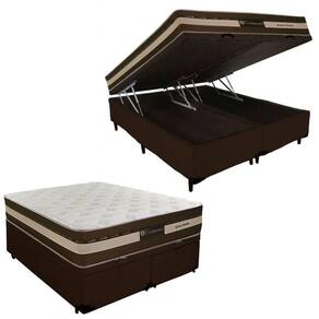 Cama Box Baú Queen Sintético + Colchão Esplendor Molas Ensacadas Luckspuma 158x198x75