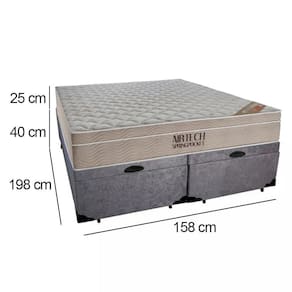 Cama Box Baú Queen Suede Bipartido + Colchão Ortobom Airtech Molas Ensacadas 158x198x65 Cinza