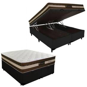 Cama Box Baú Queen Suede + Colchão Esplendor Molas Ensacadas Luckspuma 158x198x75
