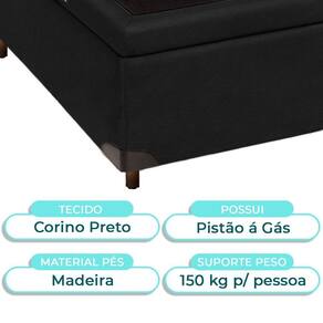 Cama Box Bau Solteirão Blindado Nature Preto 96x203 Base baú solteiro com 42cm de altura e amplo espaço interno para organização Revestimento em Veludo , fácil de limpar e com visual moderno