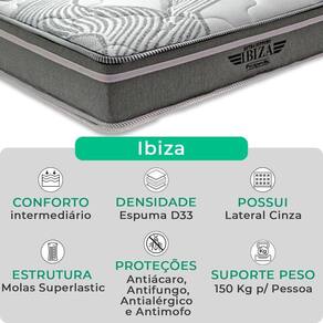 O colchão Ibiza combina Molas Ensacadas, espuma de alta performance e sistema EPS, oferecendo suporte, conforto térmico e design moderno para noites revigorantes. Já a Base Box Baú Bravus une funcionalidade e elegância, com estrutura resistente, revestimento em tecido sintético e amplo espaço para armazenamento, ideal para otimizar o quarto com estilo..