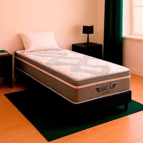 O colchão Ibiza combina Molas Ensacadas, espuma de alta performance e sistema EPS, oferecendo suporte, conforto térmico e design moderno para noites revigorantes. Já a Base Box Baú Bravus une funcionalidade e elegância, com estrutura resistente, revestimento em tecido sintético e amplo espaço para armazenamento, ideal para otimizar o quarto com estilo..
