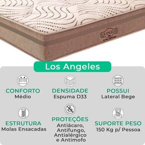 O Conjunto Colchão Los Angeles + Base Box Baú Bravus da V-Store oferece conforto e funcionalidade. O colchão, com molas ensacadas e sistema EPS, garante suporte ideal, conforto térmico e proteção . A base box, com amplo espaço de armazenamento, é feita de madeira reflorestada e revestida com tecido resistente, proporcionando praticidade e sofisticação ao seu quarto.