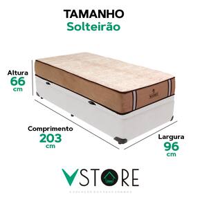 A tecnologia que a sua casa merece está na V-Store! O Conjunto Colchão Madrid + Base Box Baú Bravus da V-Store oferece o equilíbrio perfeito entre conforto, praticidade e elegância. O colchão, com molas ensacadas e sistema EPS, garante noites de sono tranquilas, com suporte ideal e proteção contra ácaros e alergias. Já a base box baú, feita com madeira reflorestada, conta com um design sofisticado, amplo espaço de armazenamento e funcionalidade adicional para guardar travesseiros, malas e cobertores. Com capacidade para até 150 kg por pessoa, esse conjunto é ideal para quem busca qualidade e praticidade.Característica Do Colchão: Modelo: MadridMarca: V-StoreTamanho: SolteirãoDimensões: 96x28x203 (Largura x Altura x Comprimento)Conforto: MédioSistema: Molas EnsacadasPillow: Não se aplicaPeso Máximo recomendado: 150 kg (Por pessoa)Proteções: Antiácaro, antialérgico, antifungo, antimofoGarantia: 12 Meses (Espuma) / 10 anos ( Conjunto de Molas Ensacadas)Característica Da Base: Marca: V-StoreModelo: BravusTamanho: SolteirãoDimensões: 96x44x203 (Largura x Altura x Comprimento)Estrutura: MadeiraPeso máximo recomendado: 150 kg (Por Pessoa)Altura do Box: 38 cmAltura dos Pés: 6 cmAltura total: 44 cmGarantia: 12 Meses (Estrutura) / 3 meses (Tecido)Selo Ecologicamente CorretoAtenção:- Antes de finalizar sua compra, recomendamos que verifique se as dimensões do produto são adequadas para serem transportadas pelos elevadores, portas, escadas e corredores de sua residência. Ressaltamos que não nos responsabilizamos pelo transporte do produto por meios específicos, como escadas, guinchos ou içamentos.- É possível que hajam leves variações de cor de acordo com o dispositivo que está sendo utilizado como smartphones, computadores, monitores e outros.