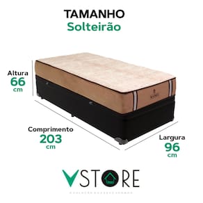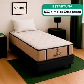 A tecnologia que a sua casa merece está na V-Store! O Conjunto Colchão Madrid + Base Box Baú Bravus da V-Store oferece o equilíbrio perfeito entre conforto, praticidade e elegância. O colchão, com molas ensacadas e sistema EPS, garante noites de sono tranquilas, com suporte ideal e proteção contra ácaros e alergias. Já a base box baú, feita com madeira reflorestada, conta com um design sofisticado, amplo espaço de armazenamento e funcionalidade adicional para guardar travesseiros, malas e cobertores. Com capacidade para até 150 kg por pessoa, esse conjunto é ideal para quem busca qualidade e praticidade.Característica Do Colchão: Modelo: MadridMarca: V-StoreTamanho: SolteirãoDimensões: 96x28x203 (Largura x Altura x Comprimento)Conforto: MédioSistema: Molas EnsacadasPillow: Não se aplicaPeso Máximo recomendado: 150 kg (Por pessoa)Proteções: Antiácaro, antialérgico, antifungo, antimofoGarantia: 12 Meses (Espuma) / 10 anos ( Conjunto de Molas Ensacadas)Característica Da Base: Marca: V-StoreModelo: BravusTamanho: SolteirãoDimensões: 96x44x203 (Largura x Altura x Comprimento)Estrutura: MadeiraPeso máximo recomendado: 150 kg (Por Pessoa)Altura do Box: 38 cmAltura dos Pés: 6 cmAltura total: 44 cmGarantia: 12 Meses (Estrutura) / 3 meses (Tecido)Selo Ecologicamente CorretoAtenção:- Antes de finalizar sua compra, recomendamos que verifique se as dimensões do produto são adequadas para serem transportadas pelos elevadores, portas, escadas e corredores de sua residência. Ressaltamos que não nos responsabilizamos pelo transporte do produto por meios específicos, como escadas, guinchos ou içamentos.- É possível que hajam leves variações de cor de acordo com o dispositivo que está sendo utilizado como smartphones, computadores, monitores e outros.