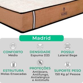 O Conjunto Colchão Madrid + Base Box Baú Bravus da V-Store oferece o equilíbrio perfeito entre conforto, praticidade e elegância. O colchão, com molas ensacadas e sistema EPS, garante noites de sono tranquilas, com suporte ideal e proteção contra ácaros e alergias. Já a base box baú, feita com madeira reflorestada, conta com um design sofisticado, amplo espaço de armazenamento e funcionalidade adicional para guardar travesseiros, malas e cobertores. Com capacidade para até 150 kg por pessoa, esse conjunto é ideal para quem busca qualidade e praticidade.