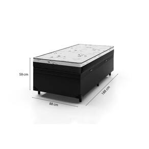 Cama Box Baú Solteiro 88 com Colchão Espuma D33 One Face PretoO colchão One Face é compostos por poliestireno expandido ( EPS) que juntamente com a espuma de Densidade D33 são responsáveis por toda a sustentação do peso. Eles são indicados para aqueles que sentem dores nas costas em relação aos outros tipos de colchões no Mercado. Famoso pela durabilidade, também suportam mais pesos e são recomendadas para aqueles que procuram um colchão com mais firmeza. Já a cama baú é uma ótima opção para quem busca praticidade e economia de espaço, podendo guardar cobertores, jogos de cama, travesseiros.Informações do Colchão: 1. Tecido de revestimento: Poliéster Bordado; 2. Cor: Branco c/ Preto; 3. Modelo: One Face (uma face); 4. Tamanho: Altura: 17 cm, Largura: 88 cm, Comprimento: 188 cm. 5. Peso limite: 120 kg por pessoa. 6. Peso do produto: 4,6 kg 7. Material de estrutura: Espuma D33 e EPS. 8. Tipo de conforto: Intermediário Firme. 9. Garantia: 3 meses. 10. Marca: Bello Box.Especificações Técnicas Baú:- Material: Madeira tratada. - Proteções: Antiácaro - Antialérgico - Antifungo – Antimofo. - Peso máximo recomendado: até 100kg (por pessoa). - Altura do baú: 41cm (35cm c/ 6cm dos pés).- Revestimento: Tecido Sintético.- Cor: Preto.- Marca: Bello Box.- Quantidade de Pés: 6 pés.- Material dos pés: plástico.- Garantia: 3 meses. - Dimensões do produto (altura x largura x comprimento) Solteiro: 41x88x188cm. Importante:- As imagens ambientadas são meramente ilustrativas e podem apresentar itens que não compõe o produto;- As cores do produto podem variar de acordo com o monitor, a iluminação do ambiente ou sua percepção visual;- Não nos responsabilizamos em subir pelas escadas ou içar o produto.- Montagens, desmontagens e instalações são responsabilidades do cliente. Estes serviços não estão inclusos no valor do produto. Para evitar imprevistos na sua entrega, confira as dimensões do produto no momento da compra e certifique-se de que ele passará por elevadores, portas, escadas e corredores.