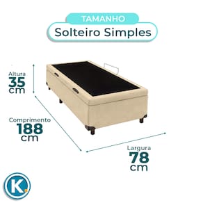 Base baú solteiro com 42cm de altura e amplo espaço interno para organizaçãoRevestimento em Veludo , fácil de limpar e com visual modernoIdeal para otimizar quartos com pouco espaço, unindo cama e armazenamentoCompatível com colchões padrão solteiro (78x188cm)Estrutura reforçada com capacidade para até 150KgAcabamento sofisticado que combina com diversos estilos de decoraçãoFicha Técnica Cama Box Bau:Modelo: EliteMarca: NatureTamanho: SolteiroTecido: VeludoLargura: 78cmComprimento: 188cmAltura: 35cmAltura dos Pés: 7cmMaterial dos Pés: MadeiraSuporte de Peso: 150KgPeso: 20KgGarantia: 3 MesesAtenção:Antes da compra certifique-se de que o produto passa por elevadores, portas e corredores.As transportadoras não realizam entregas por escadas ou içamentos.Caso o item não caiba no elevador, a entrega será considerada concluída no térreo do prédio.A cor e tonalidade do produto pode variar de acordo com o dispositivo que o usuário está acessando.