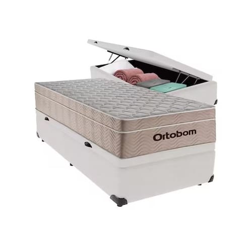 Cama Box Baú Solteiro Branco Colchão Molas Ensacadas Airtech Spring 88x188 - Ortobom
