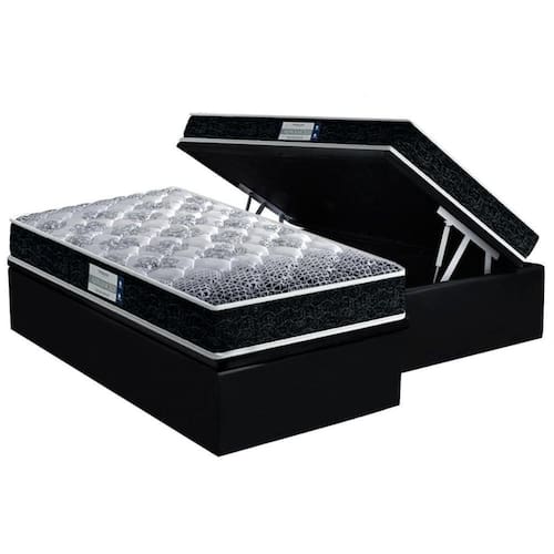 Cama Box Baú Solteiro: Colchão Anatômico Probel D33/EP Firmepedic ProDormir Advanced Tech1500 Double Face + Base CRC Suede Black(88x188)