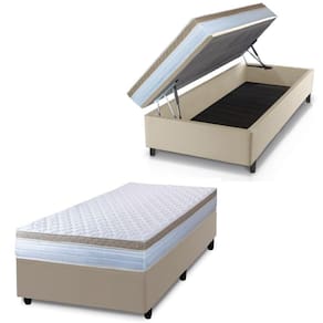 Cama Box Baú Solteiro Colchão Com Molas Ensacadas 88x188x63cm Dunas Branco/bege Hellen Branco / Bege