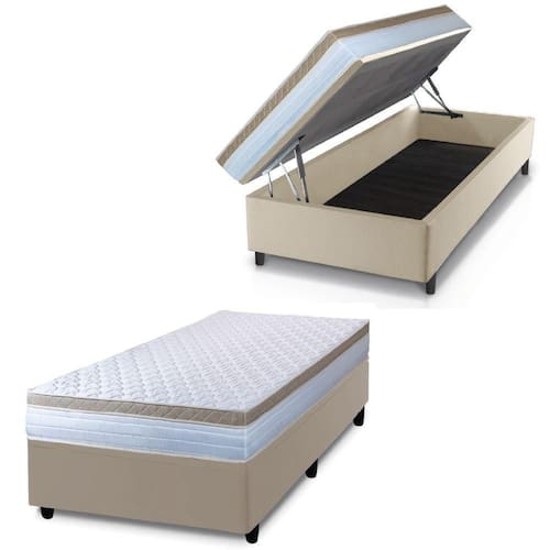 MODELO: Cama Box Baú Solteiro Colchão Com Molas Ensacadas 88x188x63cm Dunas