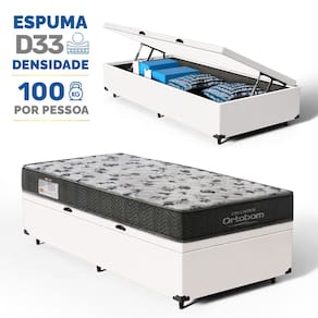 Madeira de reflorestamento tratada (base baú), Material Sintético (revestimento da cama), Poliestireno Expandido e Espuma D33 (colchão), Poliéster e Viscose (revestimento do colchão).Vendido e entregue por Lucas Colchões