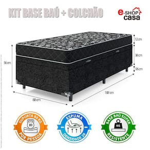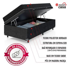 Cama Box Baú Solteiro + Colchão Espuma D20 - Suede Preto - e-Shop Casa