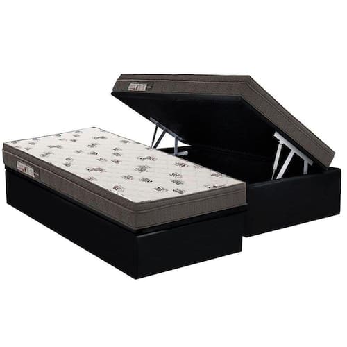 Abaixo segue os produtos do KIT: Conjunto Box Baú Solteiro: Colchão Espuma Ortobom D45 Light + Base CRC Courano Black(88x188)