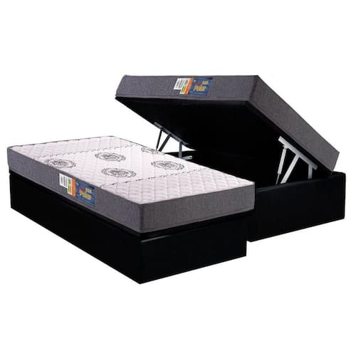 Abaixo segue os produtos do KIT: Conjunto Box Baú Solteiro: Colchão Espuma Polar D45 Pérola + Base CRC Suede Black(88x188)