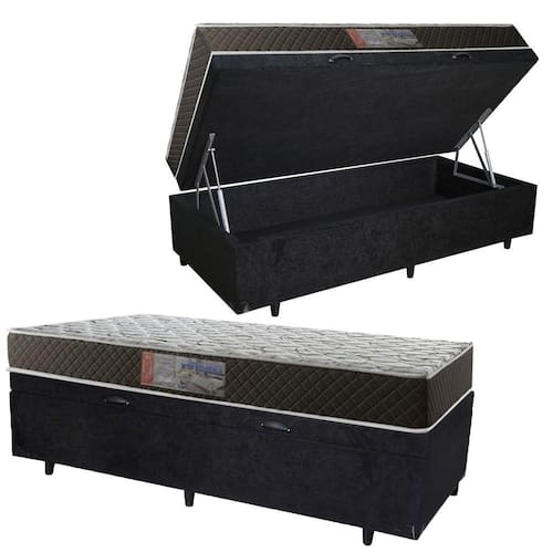 Cama Box Baú Solteiro Colchão Mola Bonnel Acolchões + Box Suede 61x88x188 - Preto