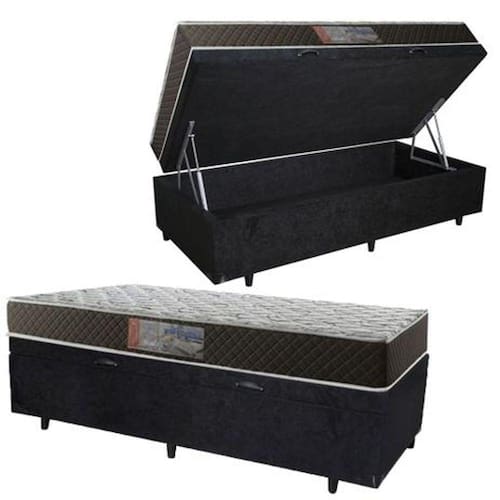 Cama Box Baú Solteiro Colchão Mola Bonnel Belos Sonhos + Box Sintético 61x88x188 - Preto