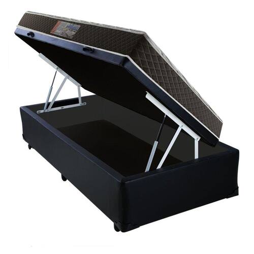 Cama Box Baú Solteiro Colchão Molas Ensacadas Acolchões + Box Sintético 65x88x188 - Preto