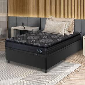 Cama Box Baú Solteiro Colchão Com Molas Ensacadas City Pillow Top 88x188x64cm Preto Hellen Preto