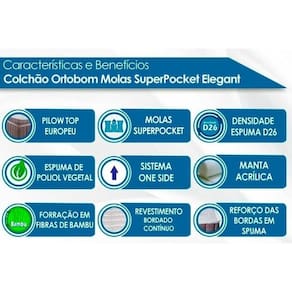 Imagens Meramente Ilustrativas. Não nos responsabilizamos pela montagem/instalação dos produtos. Todas as informações divulgadas são de responsabilidade exclusiva do fabricante/fornecedor. Forração Revestimento do Colchão: Fibras de Bambu | Nível de Firmeza do Colchão: Macio c/ Firmeza | Nossa Avaliação do Colchão: Qualidade Muito Boa | Peso Máximo Suportado do Colchão: 150 kg | Tempo de Garantia do Colchão: Certificado de Garantia Digital | Vantagens Extras de Colchão: Ecologicamente Correto | Certificação de Qualidade do Colchão: Qualidade Aprovada | Tecido de Revestimento da Faixa Lateral do Colchão: Suede | Bordado do Revestimento do Colchão: Contínuo | Tecido com Tratamento do Colchão: e | Tipo de Pillow: Pillow Top Europeu | Modo de Utilização do Colchão: One Side | Forração do Revestimento Inferior do Colchão: Antiderrapante | Camadas Interna do Estofamento de Espuma do Colchão: D26 | Características Gerais dos Conjuntos Box: 3 meses | Tipo de Mola do Colchão: Ensacadas | É eco-friendly: Sim | É antiácaros: Sim | É ortopédico: Sim | Tipo de Espuma do Colchão: Espuma de Poliol Vegetal | Com moldura perimetral: Não | Com pegas laterais: Não | de registro/certificação INMETRO: N/A | Classificação: Casal | Tipo de Produto: N/A | Código universal de produto (GTIN): 7896988650244 | Produto precisa de Montagem?: Sim, a montagem é simples mas sugerimos a contratação do nosso de montagem (para os CEPs em que o está disponível) ou de algum experiente de sua preferência | Descrição do Tamanho: cm | Estado de Origem: RJ | País de origem: | Peso Produto Com Embalagem (Kg): | Material para Filtro: N/I | Cor Mobly: N/I | Condição do Item: | Link Site: | Numeral: 0 | Não se Aplica: N/A | Não Possui: Não | Linha/Modelo: Ortobom | Cor Cnova: Blush | Cor Meli: Ciano | Contatos : | Categoria - Sub: Cama Box Baú+Colchão Molas | Categoria - Pai: Conjunto Box Baú + Colchão | Comprimento Embalagem: | Largura Embalagem: | Altura Embalagem: | Peso: Kg | Kit: 1 | Peso Real Kg: | Peso Cubado: | Volumes: 2 | M3: | Comprimento/Profundidade: 1 cm | Largura: 1 cm | Altura: 1 cm | Tamanho Montado: x Comp/ x Alt: | Comprimento/Profundidade Montado: | Largura Montado: | Altura Montado: | MPN: 0 | Tamanho Cama Colchão: Solteiro | Marca: Ortobom | Fabricante: Ortobom | Linha: Ortobom