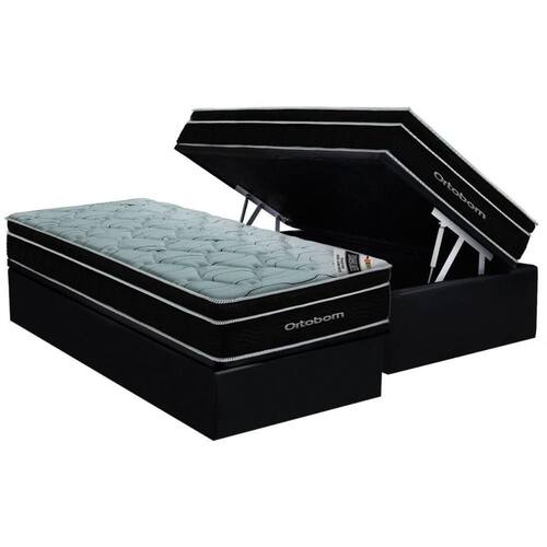 Conjunto Box Baú Solteiro: Colchão Molas Ortobom Ensacadas Elegant + Base CRC Suede Black (88x188)