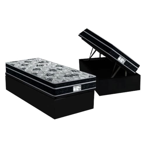 Abaixo segue os produtos do KIT: Conjunto Box Baú Solteiro: Colchão Molas Probel Prolastic ProDormir Born + Base CRC Suede Black(88x188)