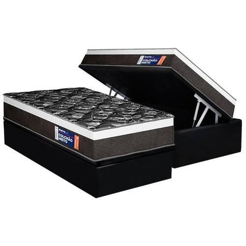 Cama Box Baú Solteiro: Colchão Ortopédico Plumatex D33 Selectus + Base Crc Suede Black (88x188)