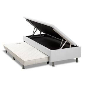 Cama Box Baú Solteiro com Auxiliar Mola Bonnel Sintético Branco 56x88x188