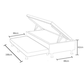Cama Box Baú Solteiro com Auxiliar Mola Bonnel Sintético Cinza 56x88x188
