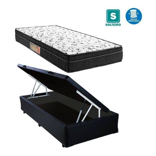 Cama Box Baú é produzida com os melhores materiais, proporcionando uma alta resistência e durabilidade prolongada. Proporcionando praticidade e conforto, tornando-se uma peça que pode ser combinada com a decoração de seu quarto deixando-o moderno e sofisticado. **As cores do produto podem variar de acordo com o monitor, a iluminação do ambiente e a sua percepção visual.** **Confira as dimensões do produto e certifique-se de que passará normalmente por supostos elevadores, portas, escadas e/ou corredores de sua residência** Características do Box: - Estrutura Interna: Estrutura em madeira 100% de Reflorestamento - Estrutura Externa: Preto - Tratamento Antiácaro: Sim - Tratamento Antialérgico: Sim - Saida de Ventilação: Sim - Ortopédico: Não - Tecido Antiderrapante: Não - Suporta até (kg): 135 Kg - Necessita Montagem: Não - Ambiente: Quarto - Altura: 35 cm - Largura: 88 cm - Profundidade: 188 cm - Possui Pés: Sim, feitos de madeira e fixos ao box - Altura dos Pés: 6 cm - Altura Interna: 27 cm - Baú: Pistão a Gás - Contém 02 puxadores, para maior facilidade na abertura - Contém 01 arco na parte de trás para o colchão não escorregar - Garantia do Fornecedor Cama: 03 meses Pistão: 06 meses Verifique nossas politicas internas para que não haja nenhuma dúvida no processo de entrega ao finalizar a compra, pois não fazemos a montagem e desmontagem do produto e/ou portas e janelas, transporte pela escada ou içamento pelo lado de fora do prédio. O Colchão com Espuma D33 é altamente resistente e confortável, proporcionando melhor sustentação e durabilidade ao produto, o tampo é bordado, que entrega uma camada extra de conforto. Para quem procura um colchão com custo e benefício, esse é ideal para toda família.