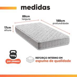 ITENS INCLUSOS: 1 Colchão Solteiro (88cm), 1 Box Baú Solteiro (88cm)