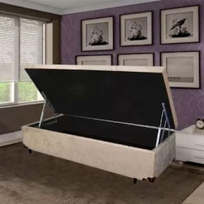 O Baú Master possui um sistema de amortecimento a gás que evita o esforço na hora de abri-lo, alça de apoio para o colchão não se deslocar quando você abrir o box e pés rosqueáveis que se ajustam aos desníveis do piso e tecido antiderrapante no tampo. Seu revestimento em tecido sintético ou suede tem uma linda estética e fácil de limpar. Além disso, proporciona amplo espaço de armazenamento para roupas de cama, travesseiros e outros itens, ajudando a manter seu ambiente organizado. Unindo qualidade, responsabilidade ambiental, bom gosto e o luxo do couro sintético ou do suede. Suporte de peso de 150 kg por pessoa.