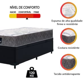 REVESTIMENTO INTERIOR: Poliéster com camada de espuma D28 que faz com que o colchão suporte até 120 kg por pessoa